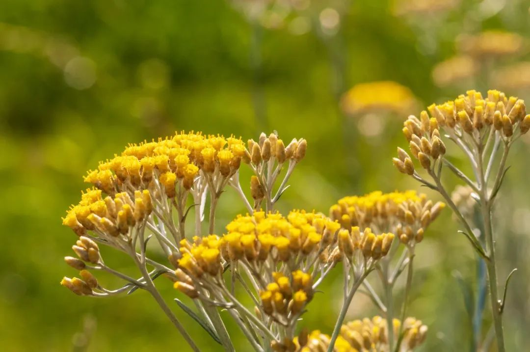 六月,环绕着地中海地区,长期暴露在盛夏炙热之中,有一种植物在这样的季节里奔放的绽放着,法文与德文同样称之为“永久花”,古希腊文称为helios:太阳或chrysos:黄金。