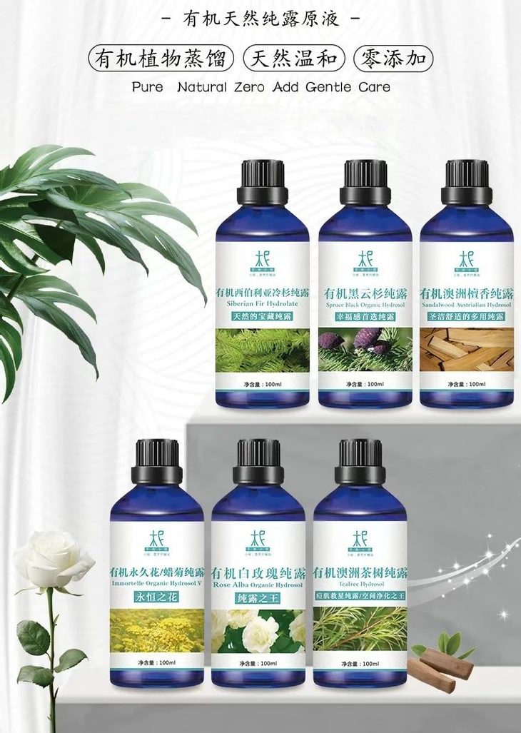 1、护肤:可搭配乳香,白玫瑰,橙花纯露,做一支非常棒的护肤柔肤水。