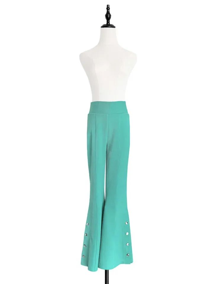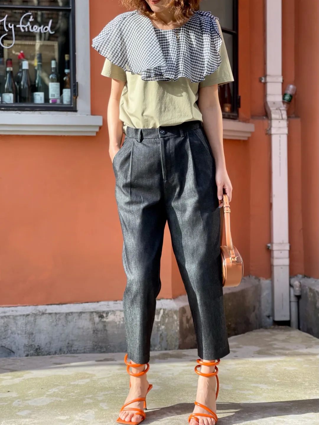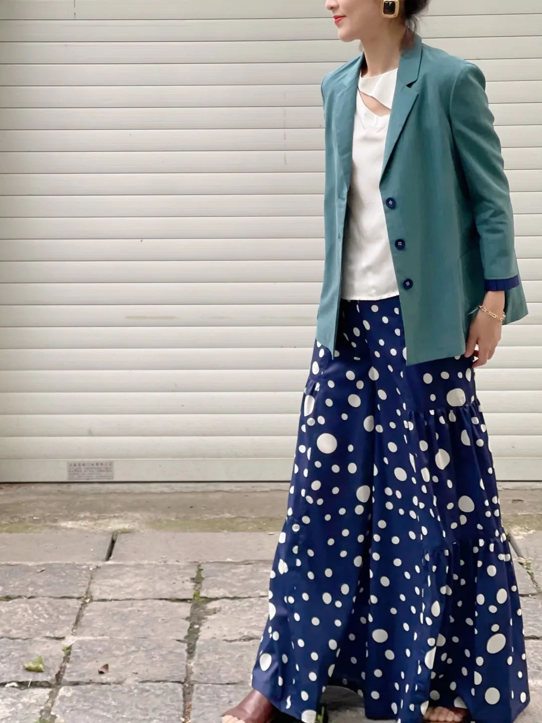 也可以换上绿色下装,搭配黑白基础色系上衣