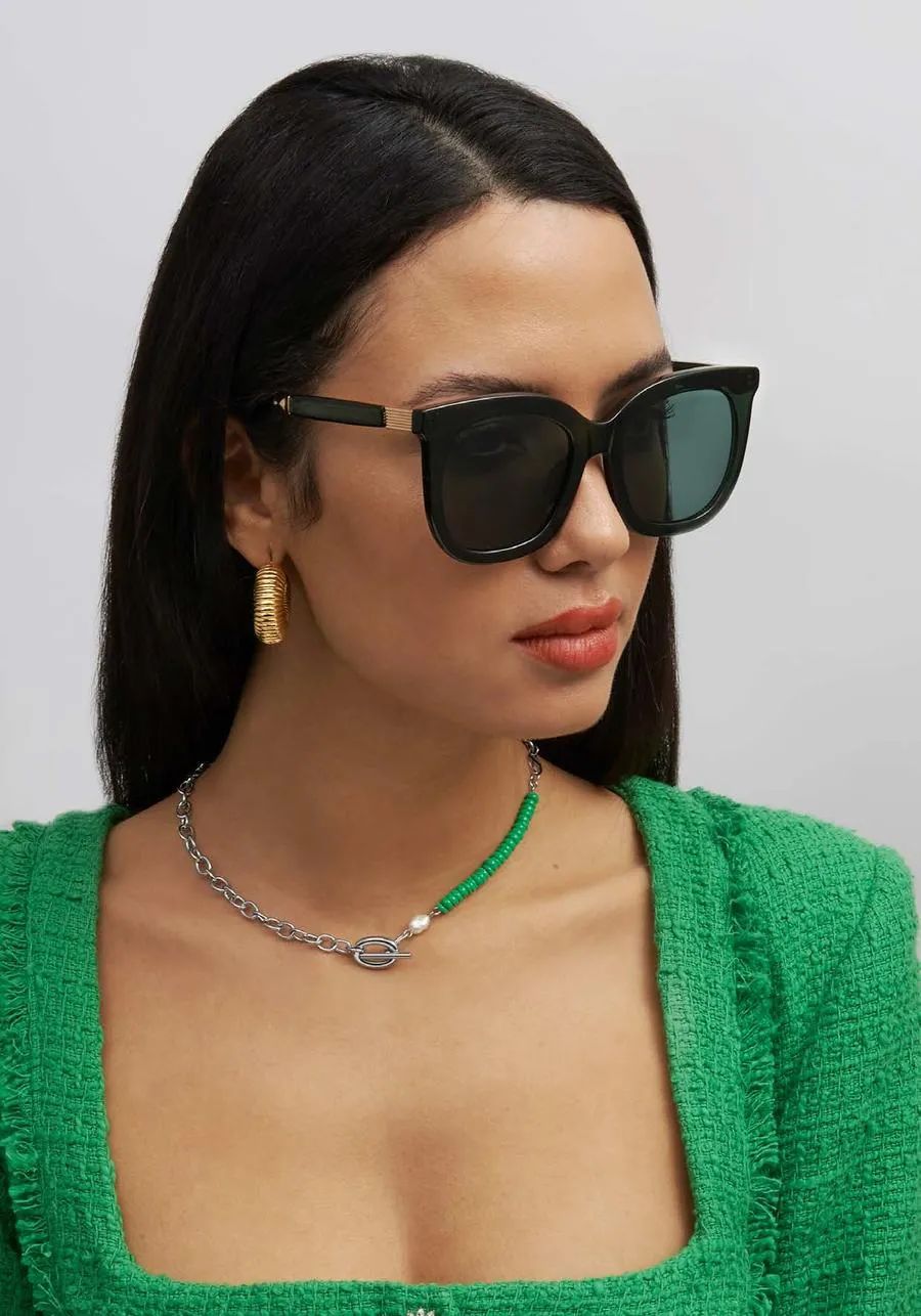 利用饱和度不同的绿色搭配,可以极大地提升look的层次感。