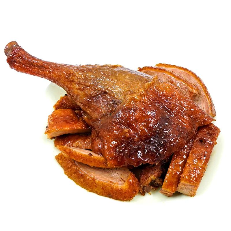 不停的让鸭子在热油中翻滚至鸭皮棕红酥脆