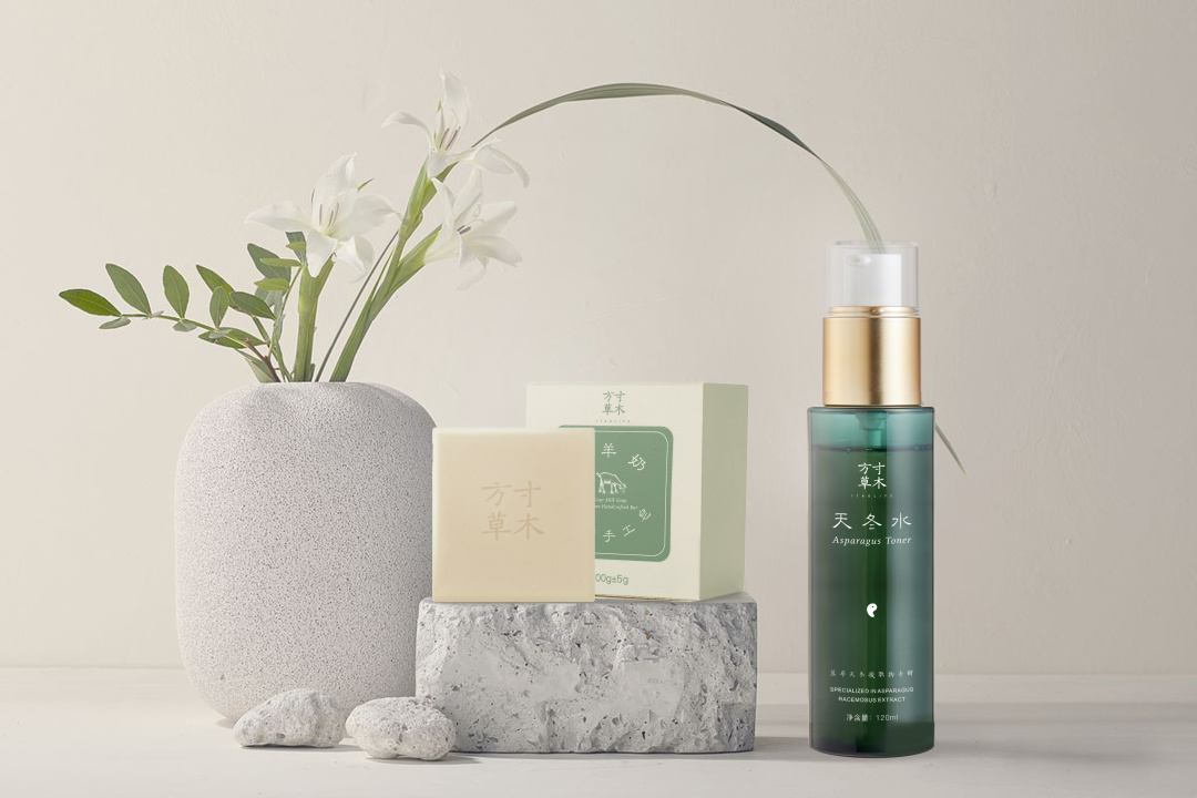 方寸草木以“宋代美学”为设计灵感,追求人、护肤、自然的和谐链接。