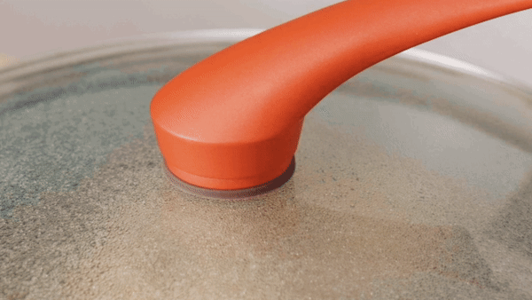 锅盖提手下添加了感温硅胶圈,油温达到140℃以上会自动变成粉色,提醒该减火了,让我们更方便直观的掌控火候,简直太贴心啦~