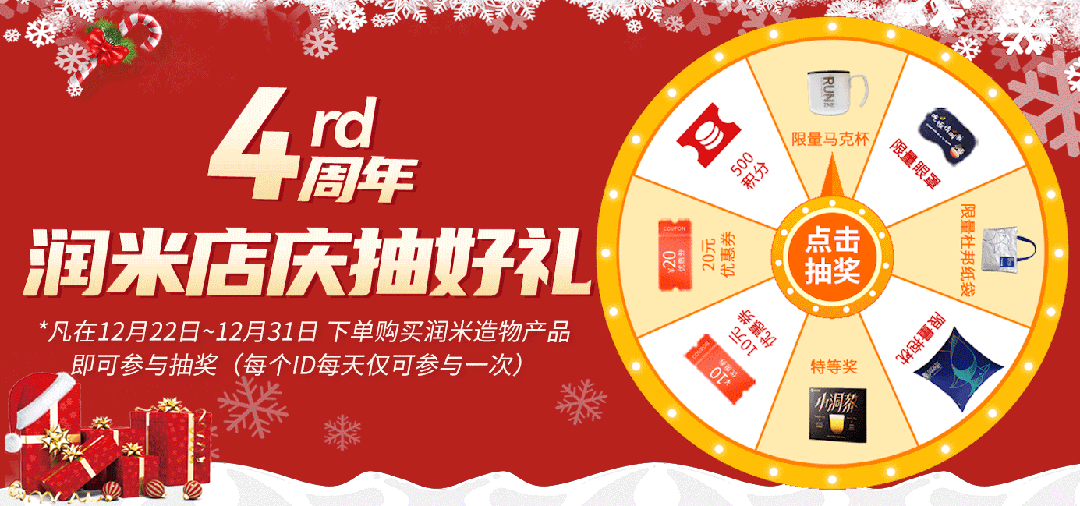 不仅仅是圣诞元旦的“双旦狂欢”,每年的12月25日也是润米商城的生日哟!