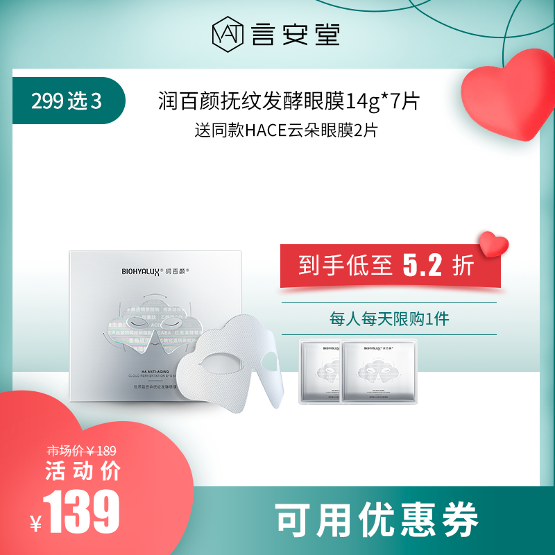 ⚠️润百颜云朵抚纹发酵眼膜14g*7片装,七夕活动价139元,再送同款HACE云朵眼膜2片!
