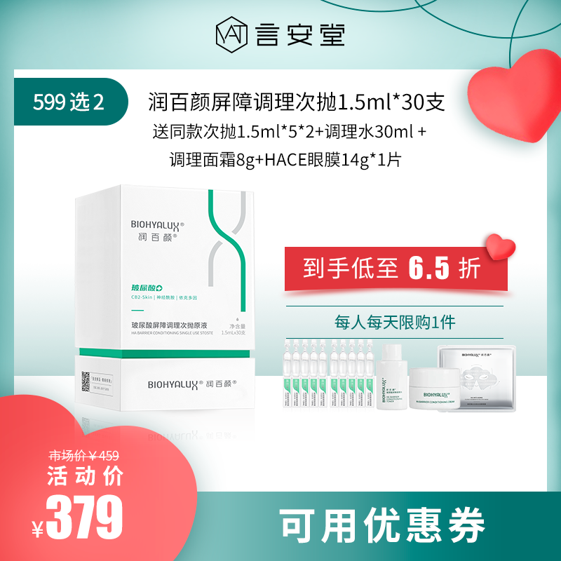 ⚠️润百颜屏障调理次抛.5ml*30支装,堂里七夕活动价379元,送同款屏障调理次抛1.5ml*5支*2+屏障调理水30ml+屏障调理面霜8g+HACE眼膜14g*1片