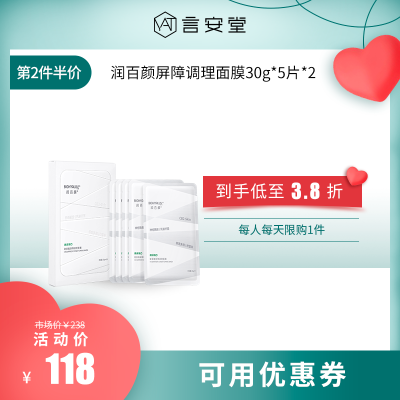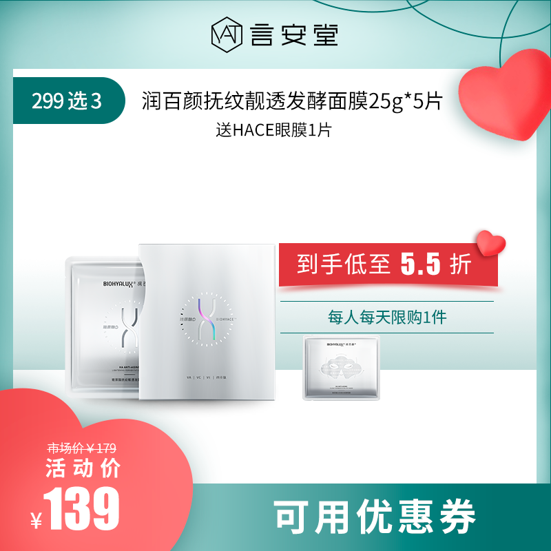 ⚠️润百颜抚纹靓透发酵面膜25g*5片装,七夕活动价139元,还送HACE云朵眼膜1片!