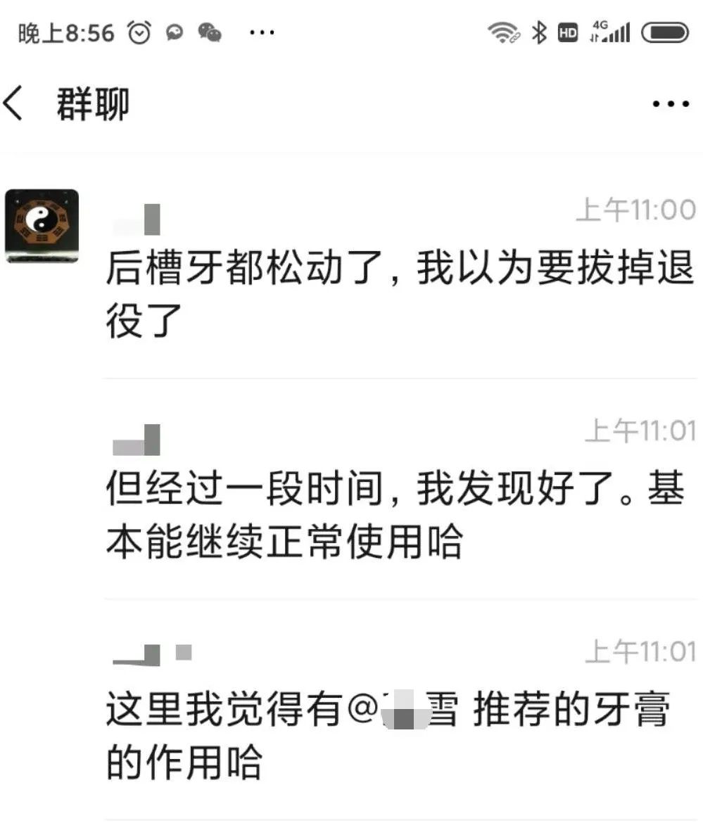 ![]() | @兰姨 “我真是后悔拔牙!钱没少花,罪没少受,牙齿比以前还糟糕!松动牙在嘴里摇摇晃晃的,连芹菜我都嚼不动,更别提吃肉了!” |