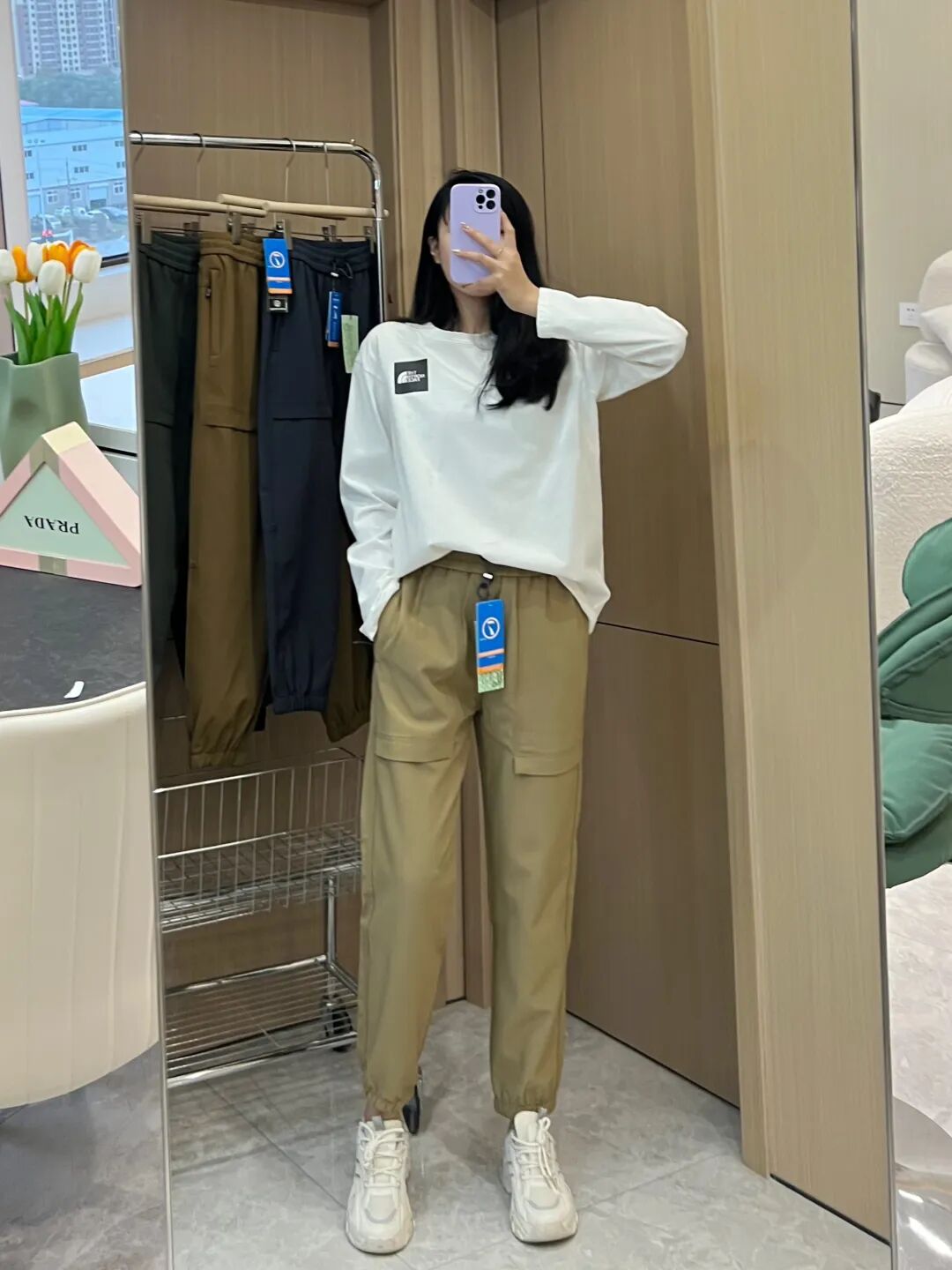 裤脚是收紧设计,户外运动的时候能更好锁温,防止冷风钻入。还能平衡整条裤子的流畅感,突出脚踝的纤细,看起来更显腿长、腿细。