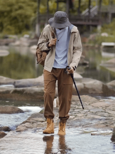 男生穿显得整个人精气神十足,随便搭配什么卫衣、冲锋衣、大黄靴,拍照超好看。