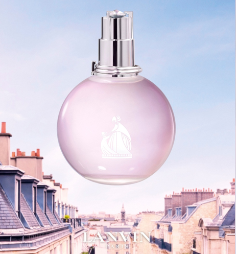 标志性的圆形光韵香水瓶披着一层渐变银粉色,