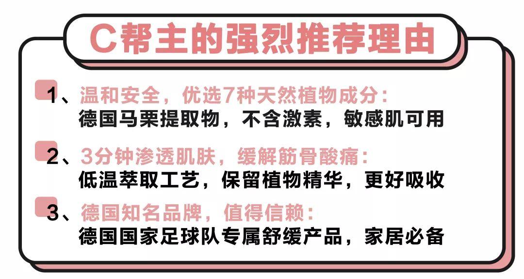 和一般的止痛药膏不同,它是“治本型”选手,疗效这么给力,很大程度要归功最核心成分:马栗精华。