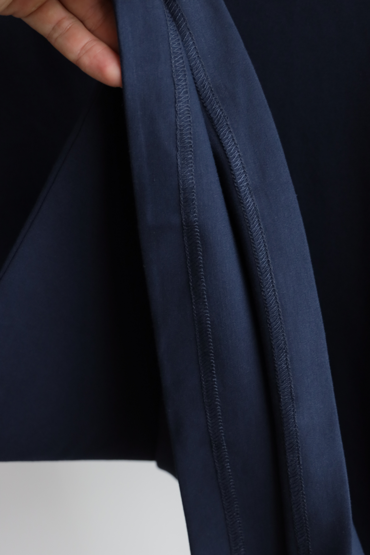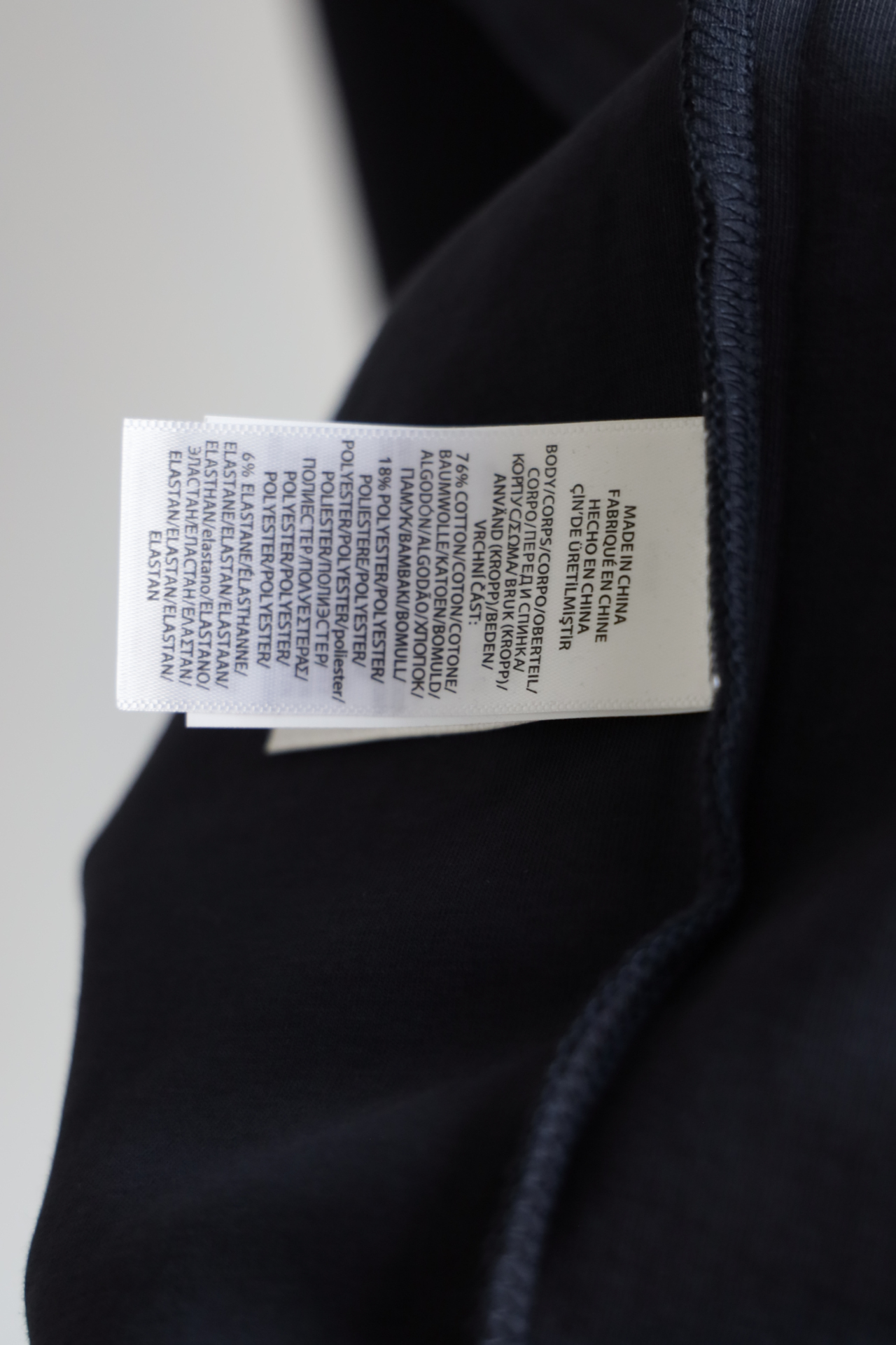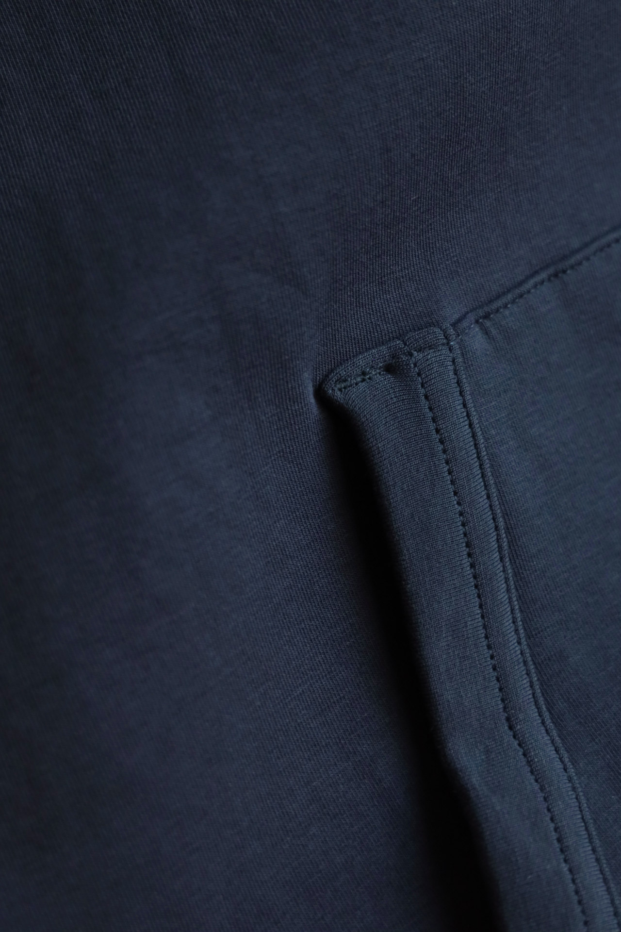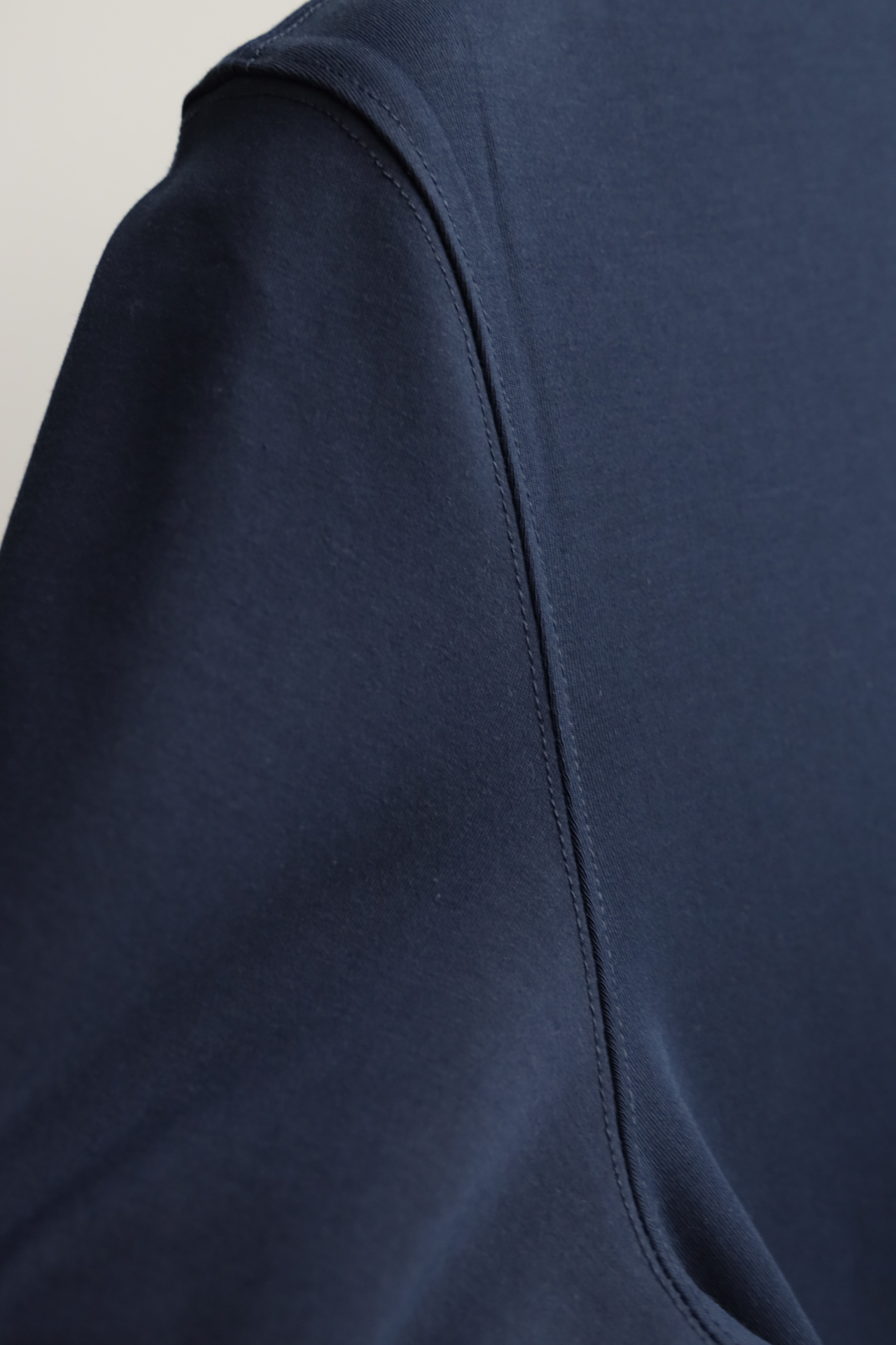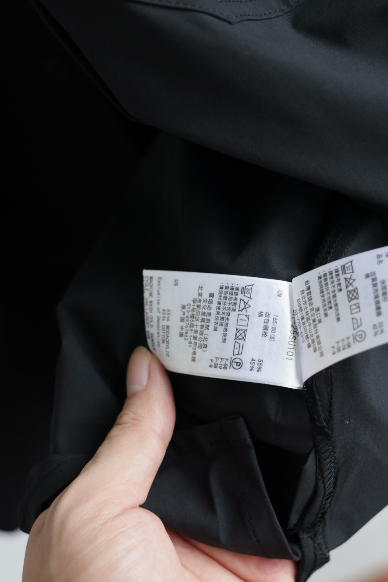 面料舒适有弹力,抗皱上身有型。纱线密度高,工艺稳定性好,采用的成衣染色工艺整体呈现质感高