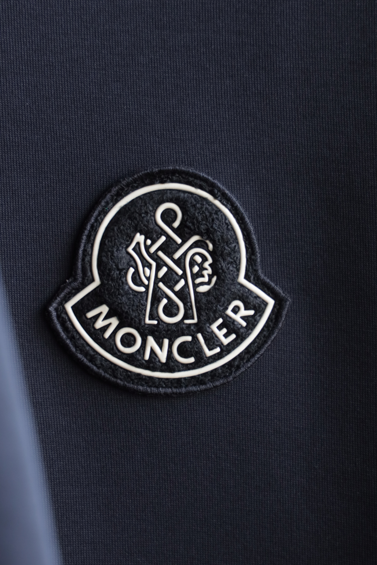 特殊设计的元素标志的刺绣植绒贴布装饰于胸前,舒适精致,上身很有高级感。