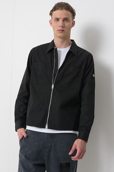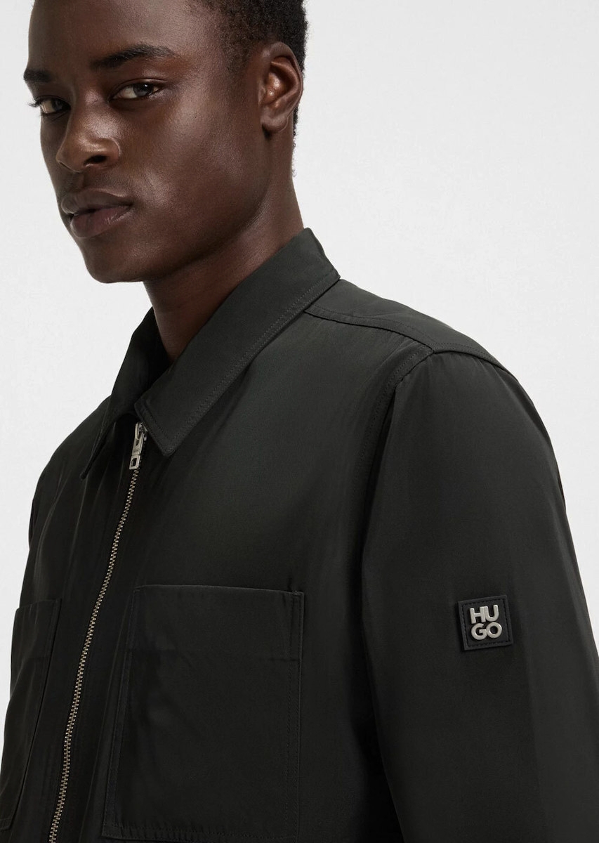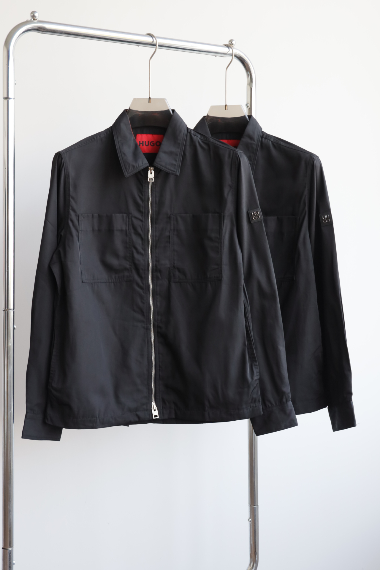 单层面料秋季穿正合适,左侧袖口金属徽标