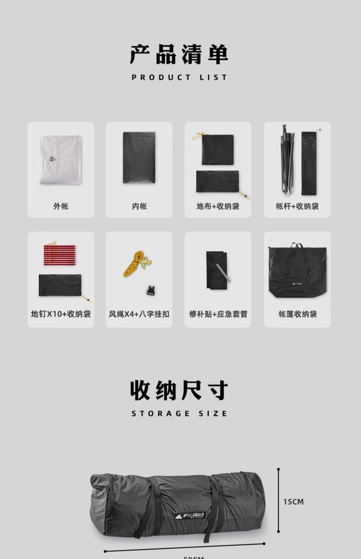 标配有地布,隔脏防水,增加帐底使用寿命。