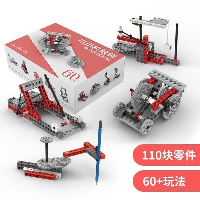 比如,齿轮传动是机械传动中应用最广的一种传动形式,而这套机械套装中用到齿轮的地方很多。