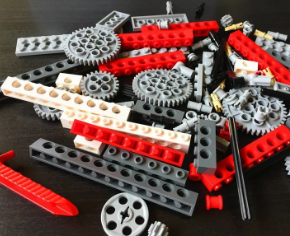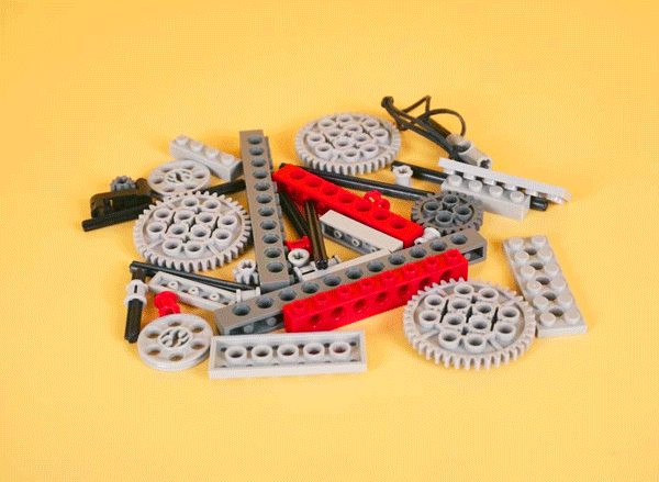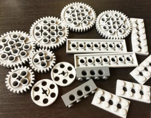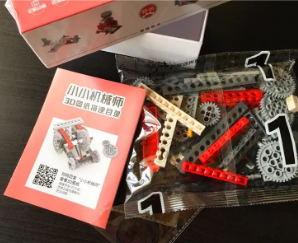 这套《小小机械师》足足有100多块零件,种类也很丰富,比如齿轮、带孔砖、十字轴等,可以满足多种模型搭建。