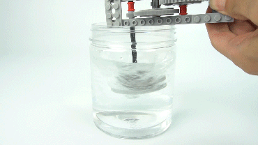 比如,迷你搅拌器,做好放入水中,摇动操纵杆,水中的轮子就会迅速转动,搅得水花四起。