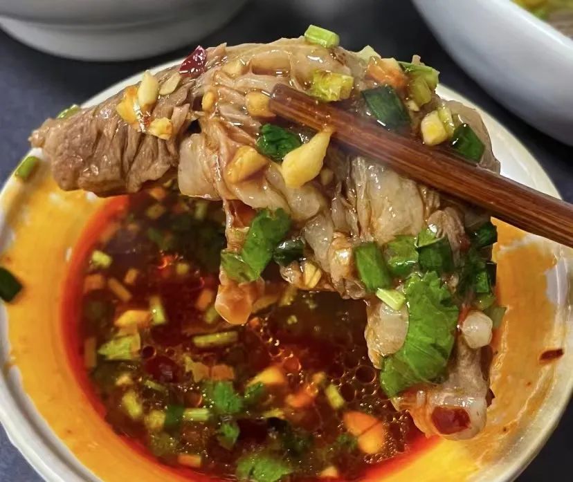8、蘸料:葱花、香菜、蒜末、小米辣、生抽、醋香油、半勺糖。