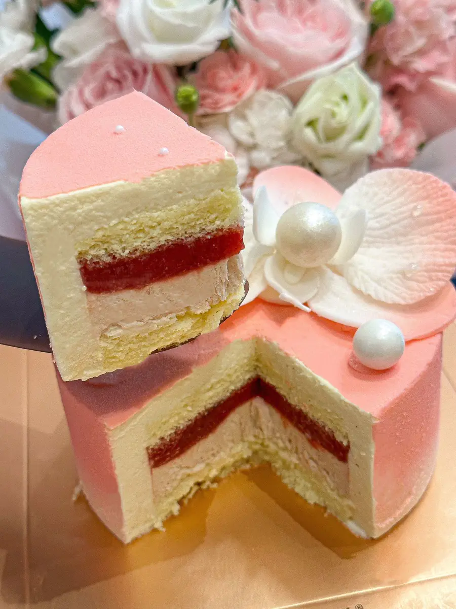 芭乐柚子香草芝士慕斯,口感软糯香甜如奶油冰淇淋,里面的夹层吃起来酸甜可口,超好吃!!