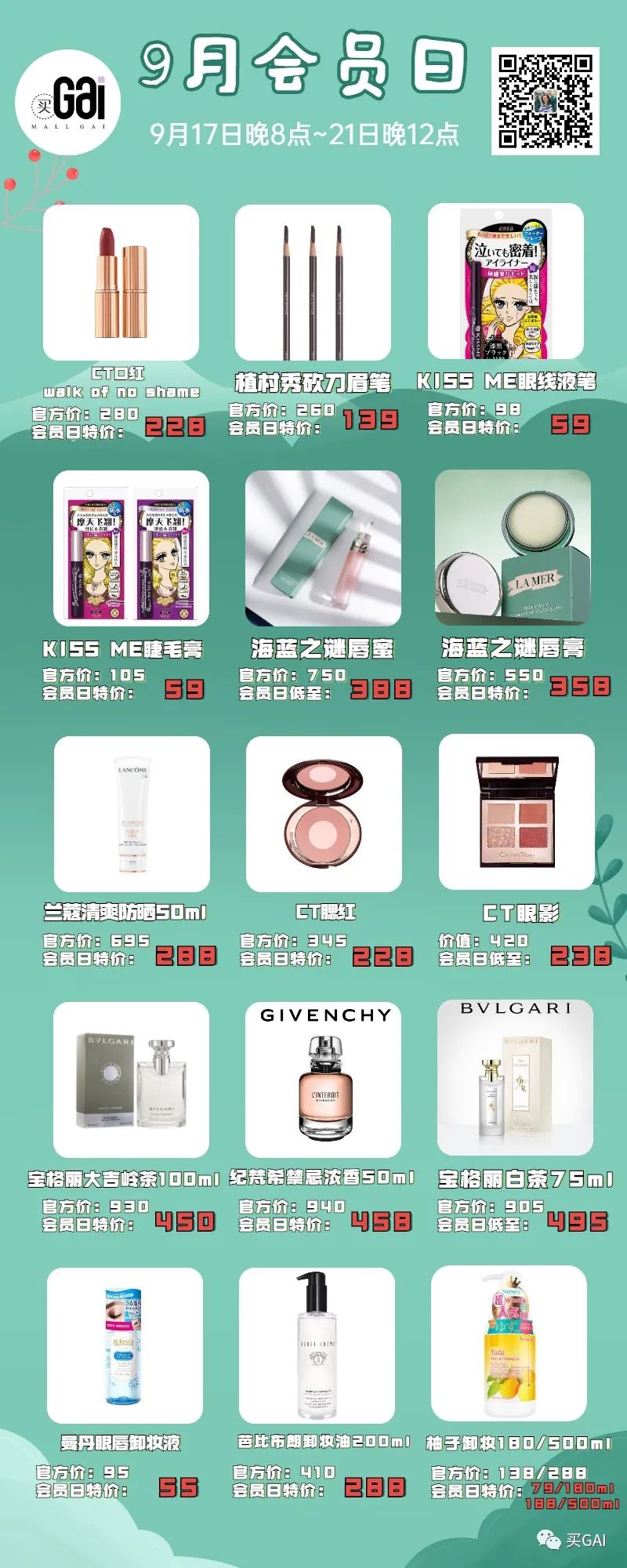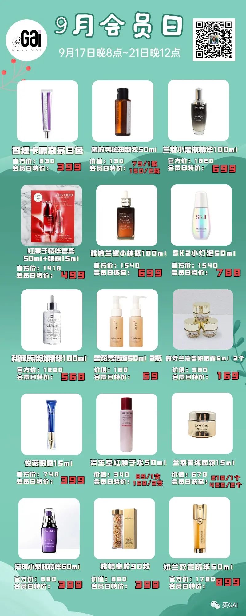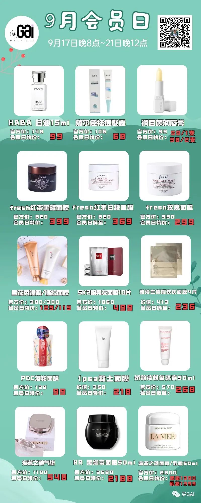 9月会员日时间为17号晚上8点-21号晚上12点
