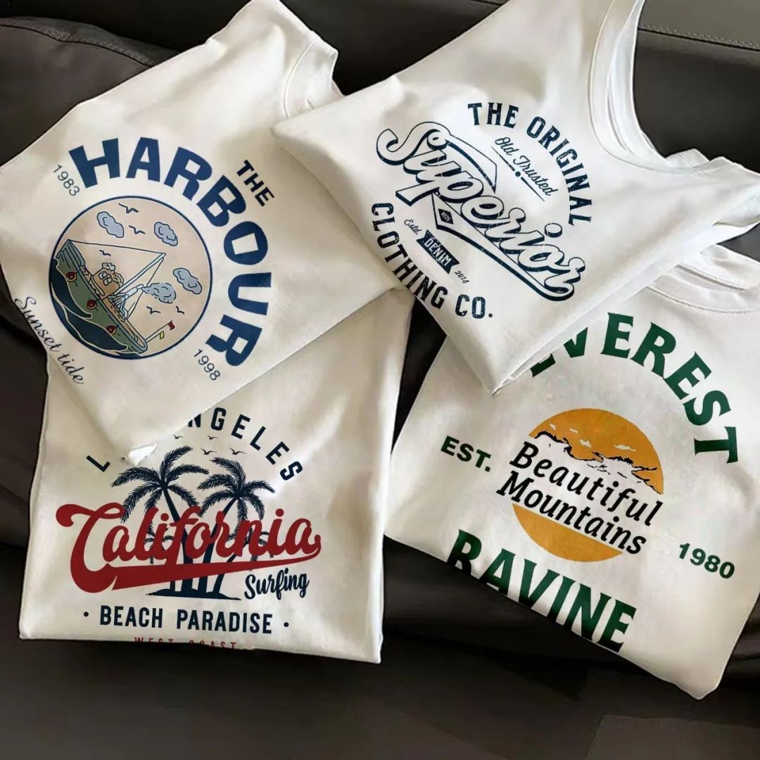 通过设计,出菲林,晒版,印花,烘干这几个步骤让印花牢牢被印在T恤上,就算机洗多次也不容易掉色或是裂开。