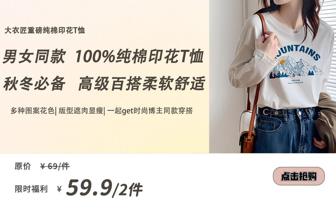 更重要的是它的价钱,可以对比一下,市面上质量稍微好些的印花T恤都要100+元↓