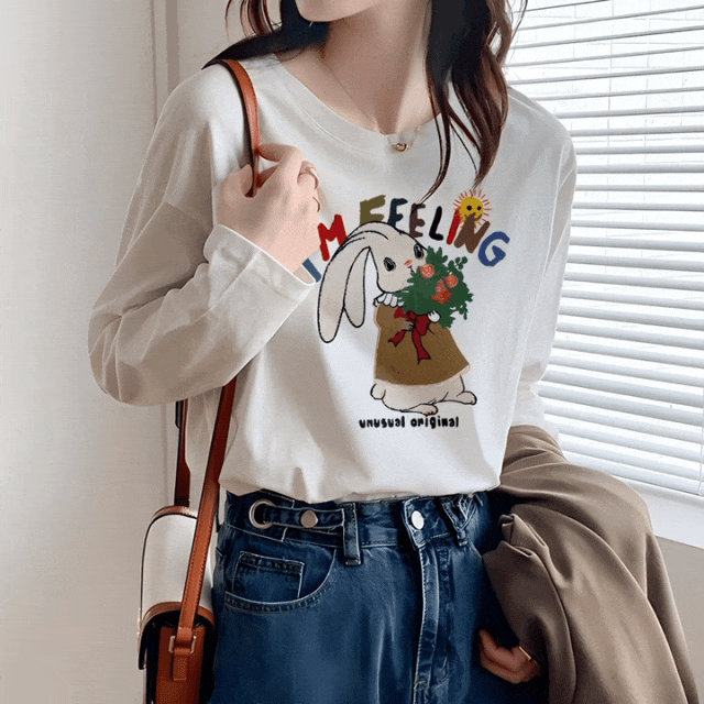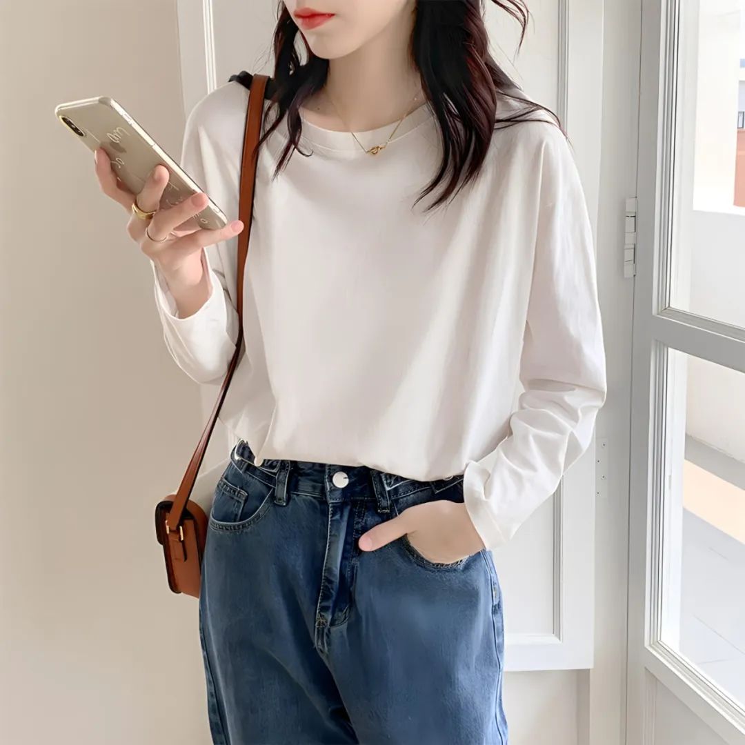 秋冬长袖T恤精选新疆长绒棉作为面料,100%纯棉,透气不闷,软糯如同猫咪的肚皮~