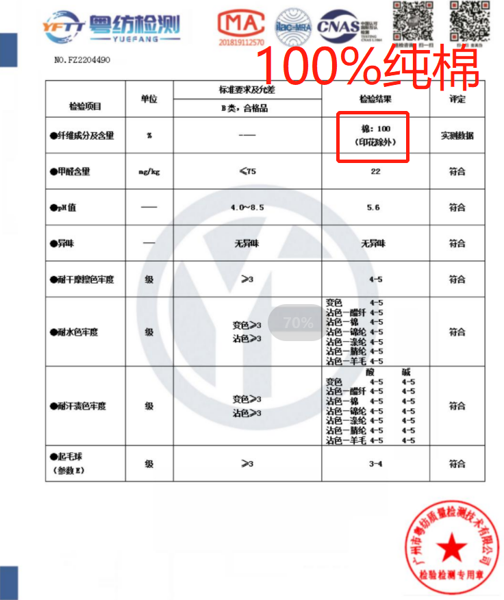 100%纯棉面料,舒适透气