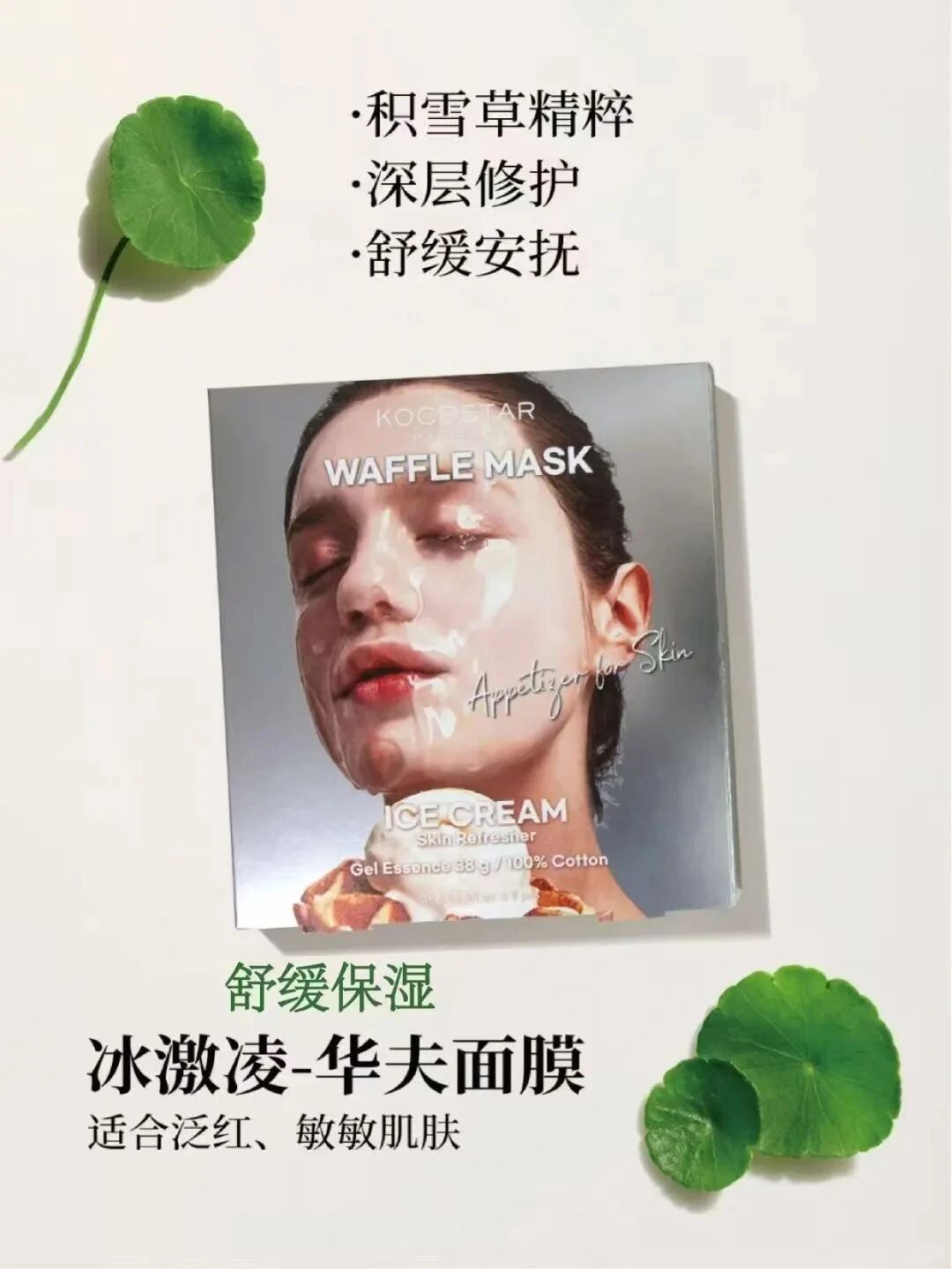 冰淇淋主打舒缓补水。特别适合敏感肌或晒后修复,有用户分享:“出去玩脸上泛红敏感,睡前敷一片冰淇淋,第二天早上泛红好了很多,洗脸也不痛了”。