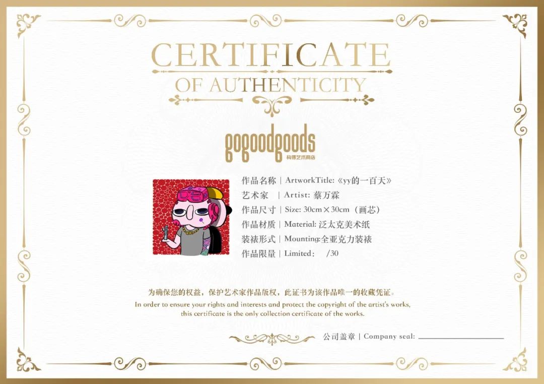 此次构得艺术将《yy的一百天》30幅画面中的五幅画面制作并发行为限量版画,采用泛太克美术纸和全亚克力装裱,每幅限量一件。