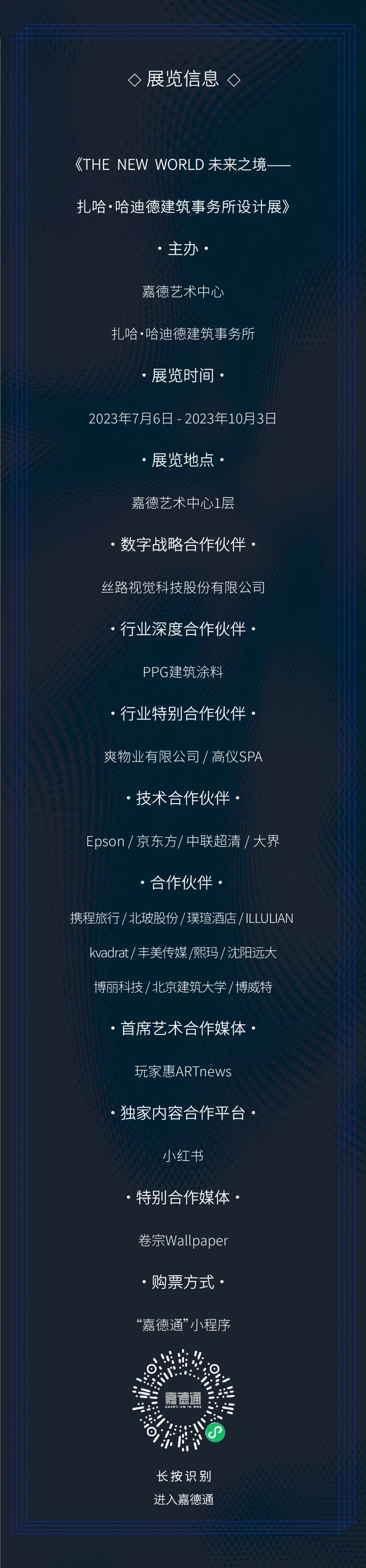 此次嘉德艺术中心的这场以“THE NEW WORLD - 未来之境”为主题的展览中,从主题本身到围绕它展现的一切载体,能够很好地诠释出ZHA直面当下的复杂现实问题的勇气——面对着以科技为核心所形成的诸多影响,如人们在高速化生活节奏中暴露出寻求内心安宁的诉求、自然生态面临的破坏性威胁与困境、新技术、新材料等的应用对建筑发展提出的全新的考验……诸如种种,无不纳入到ZHA的思考之下。