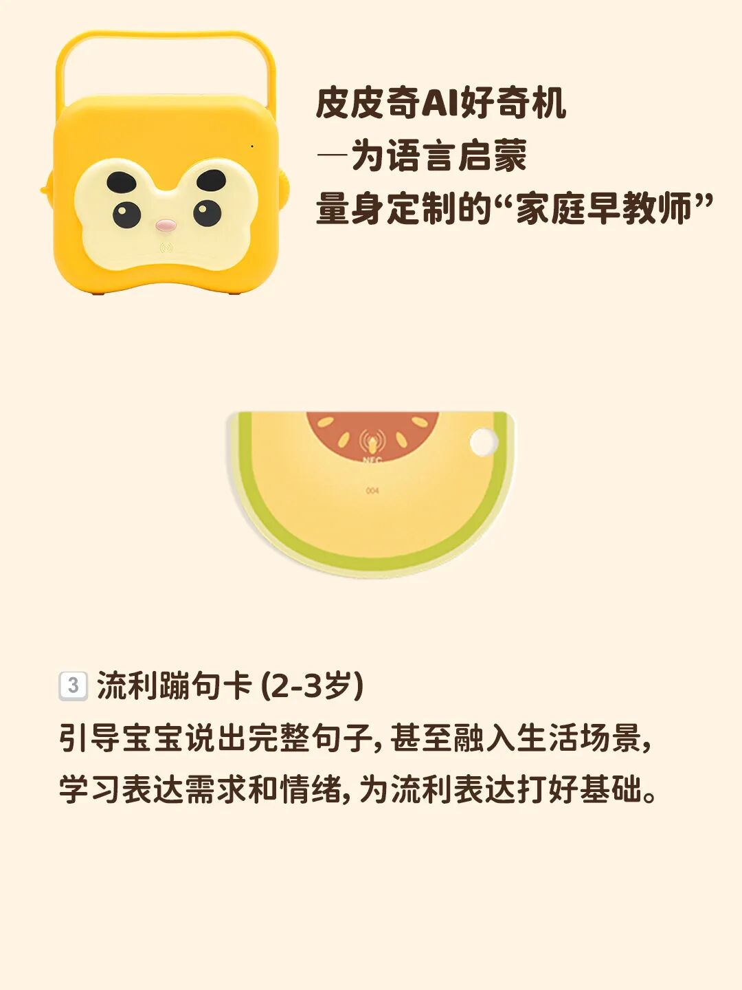 新手麻麻们别焦虑!小鸡球球同研发团队的另一省妈神器——皮皮奇 AI 好奇机上新啦!奶黄一样的小蛋糕机,可以说是咱0-4 岁宝妈的 “早教救星”!