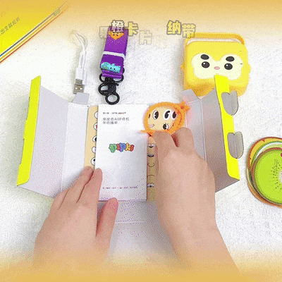 产品包含:皮皮奇好奇机 + 11 张 NFC 卡(9张主题卡+2张功能卡)+ 外出背带+卡片收纳带+DIY表情贴纸+说明书/伴听播单/数据线。