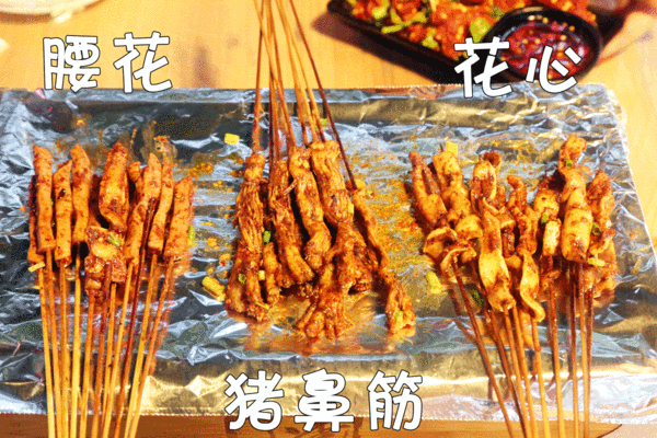 牛肉串 10串 | 猪瘦肉 60串 | 鸡胗 10串 |