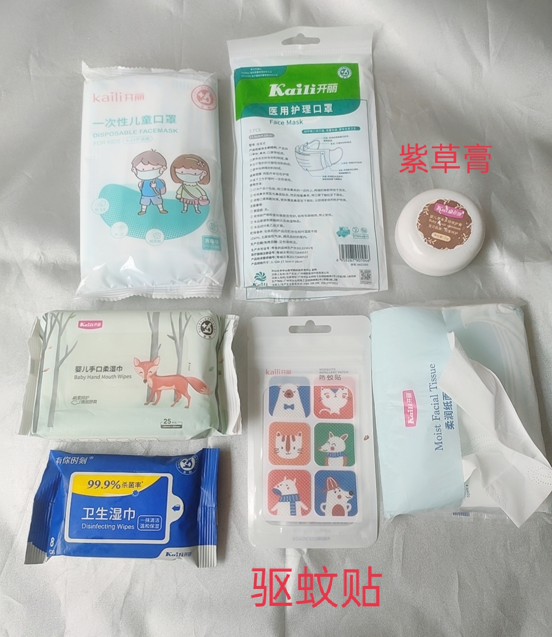 @爱吃肉的小胖子:开丽的小包装湿巾 柔纸巾肯定是出门必备的 消毒湿巾在人多的地方随时可以拿出来消毒 虽然夏天过去了 但是秋蚊子也是很毒 蚊香贴和防蚊喷雾对于爱招蚊子的宝宝也是必不可少的 最近还入了开丽合作品牌杯具熊的保温水杯 颜值也是爱啦爱啦