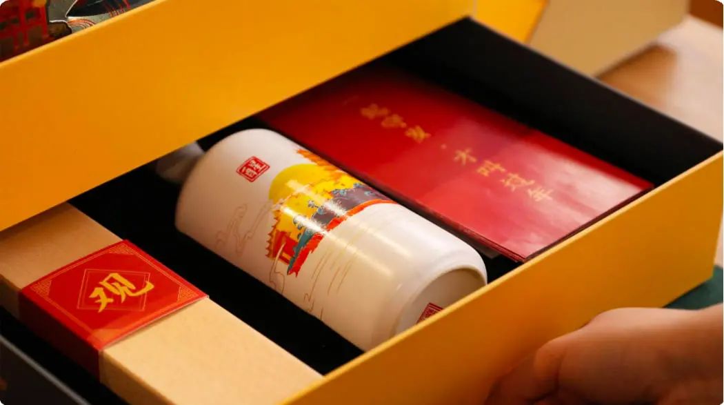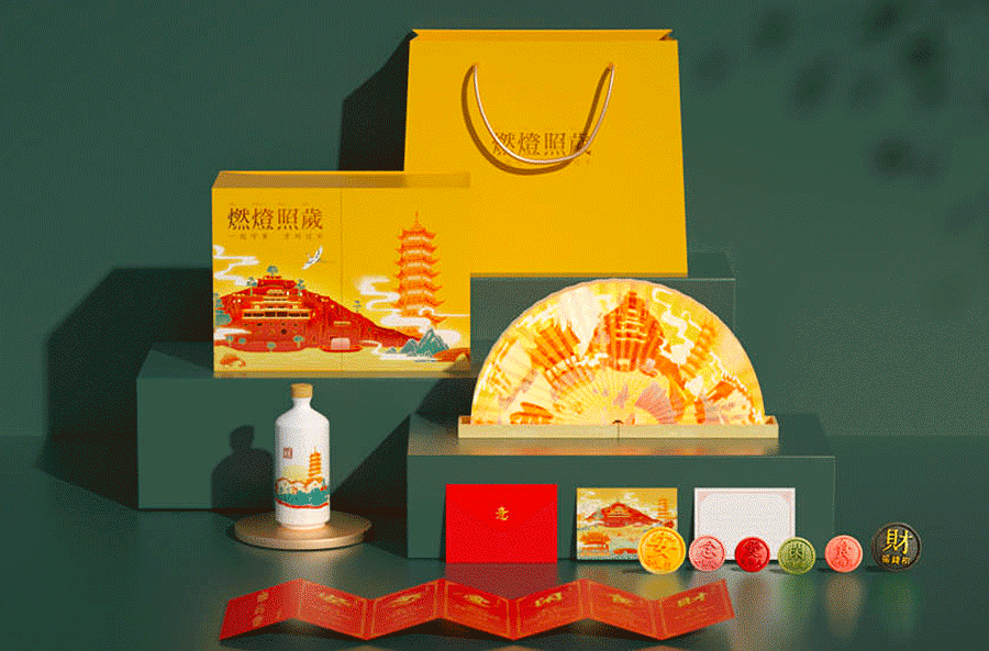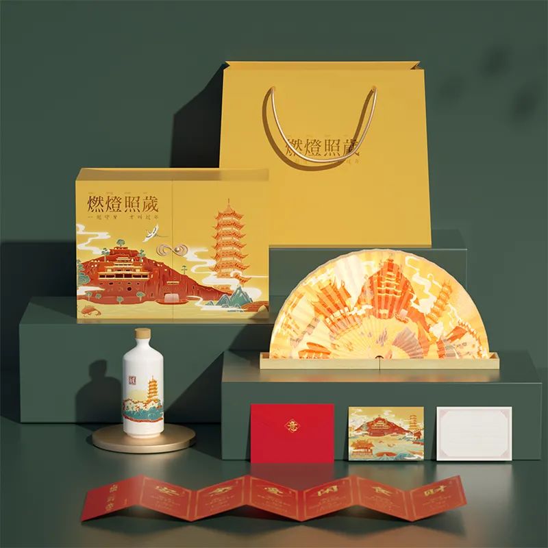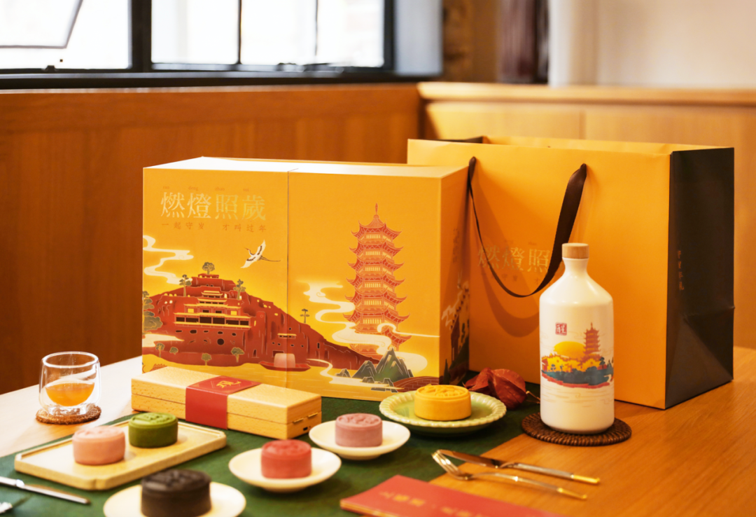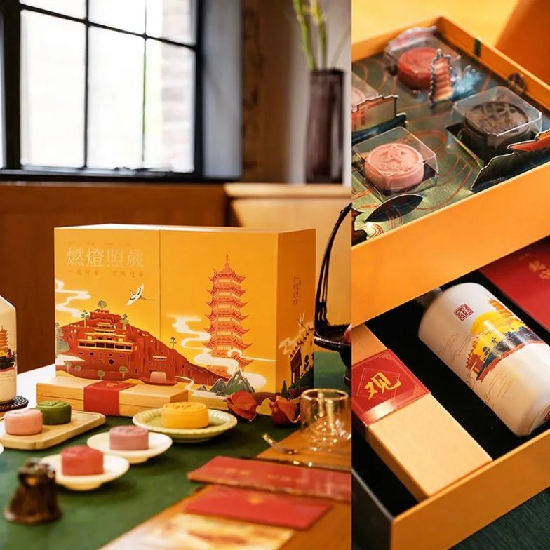 在除夕夜,打开「燃灯照岁」礼盒,流光溢彩的微型博物馆缓缓升起,带着美好祝福的点心在微型建筑中灼灼生辉。