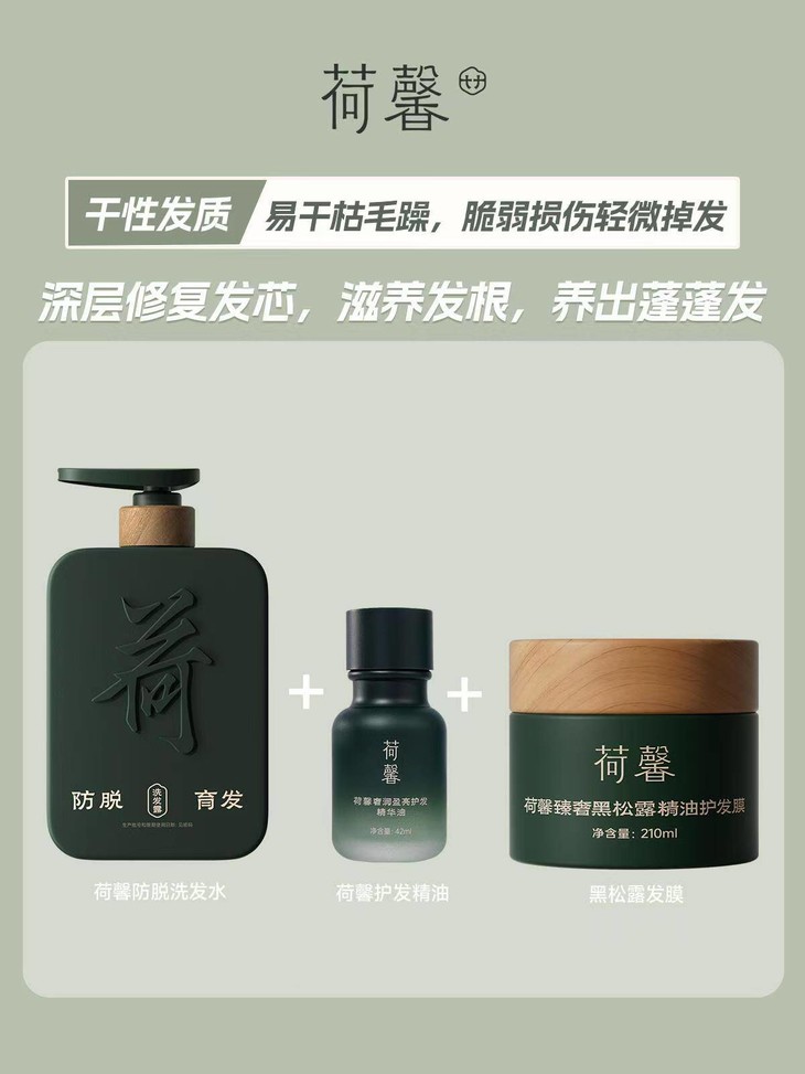 #防脱洗发水+护发精油+黑松露发膜 深层修复,养出蓬松柔亮