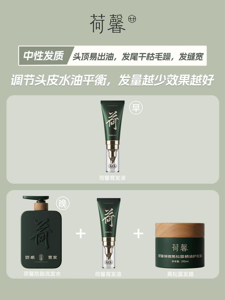 #育发液+防脱洗发水+黑松露发膜 早晚搭配,平衡头皮,增发效果更佳