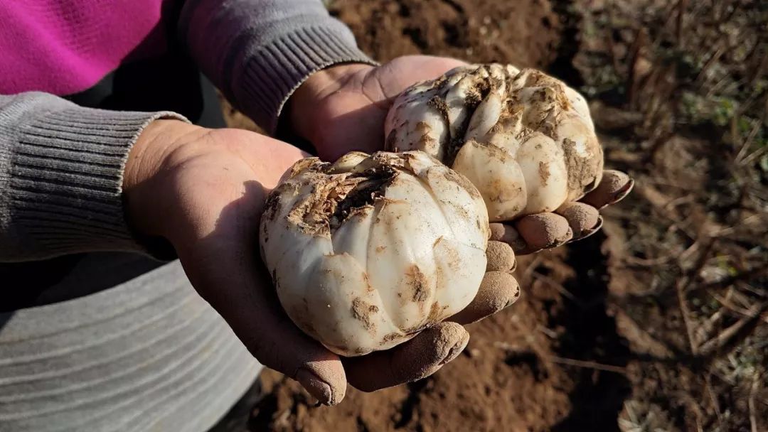 窦大哥和村民去山里用手一颗一颗把百合挖出来,符合条件的才发给大家,小颗的再进行重新栽种,每一个都符合6年生的标准.