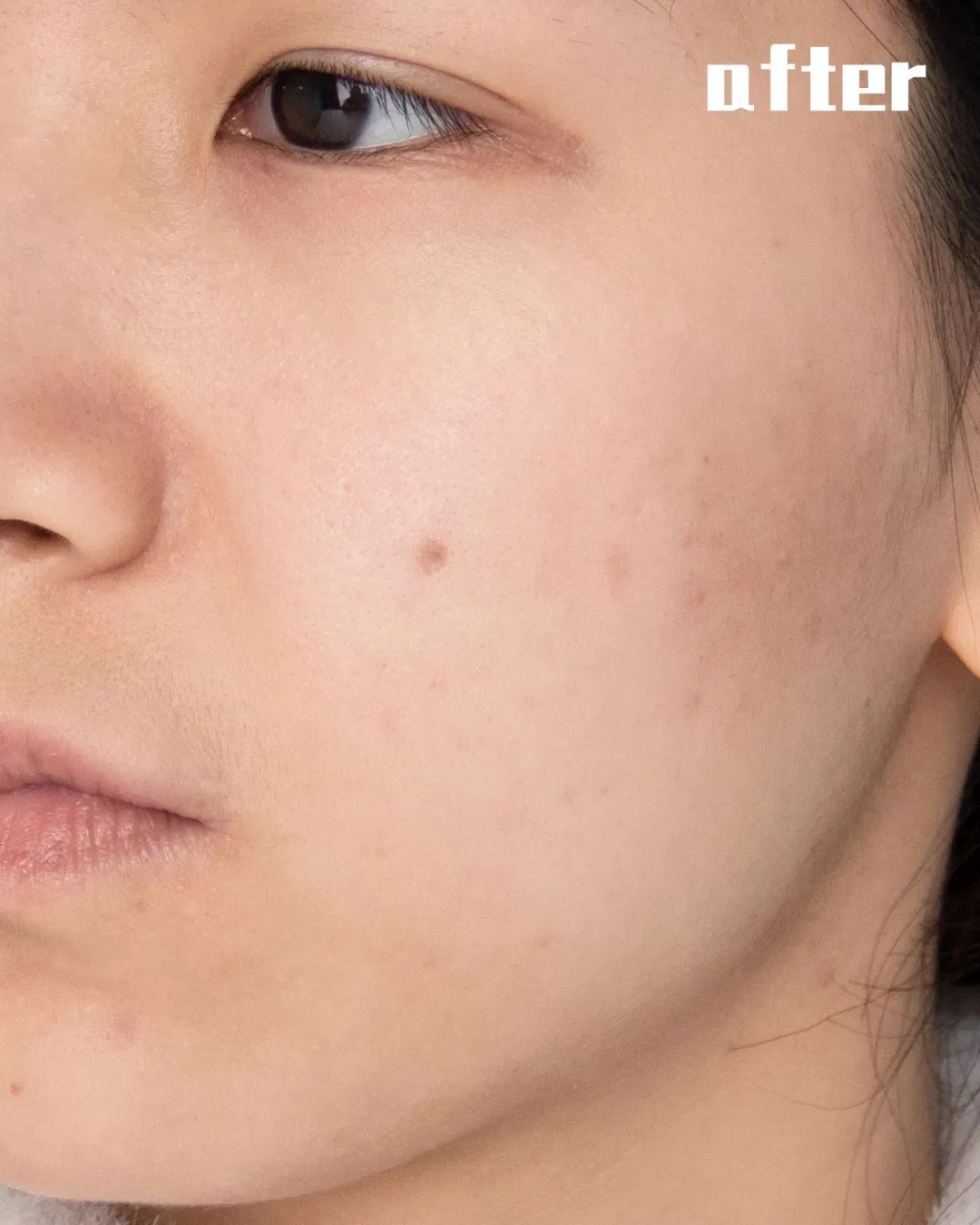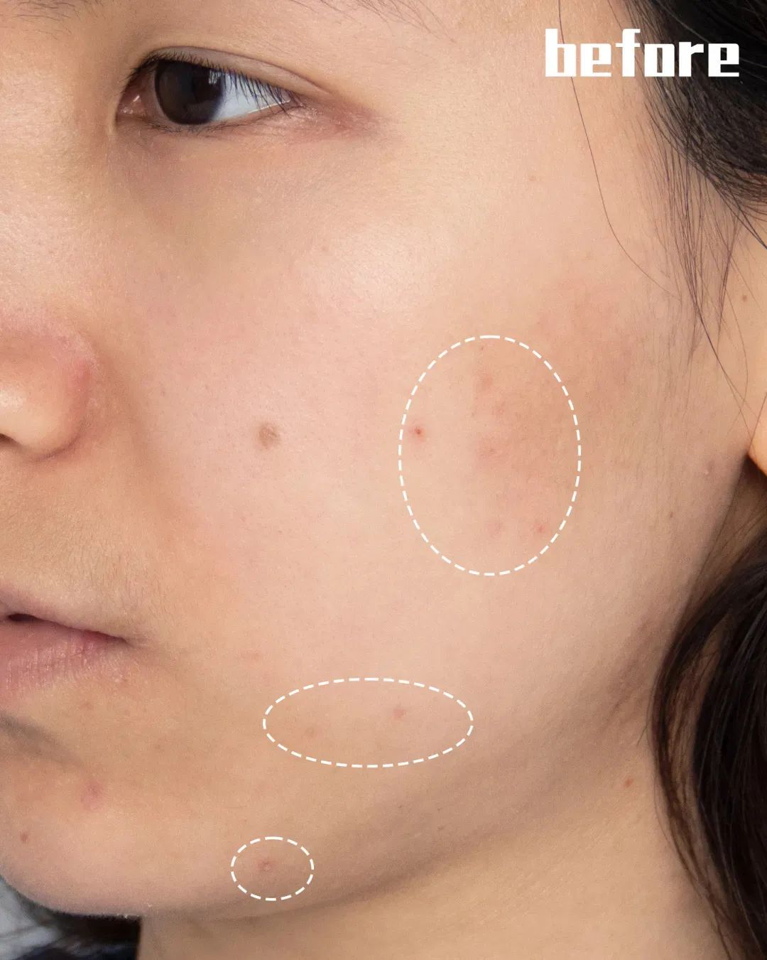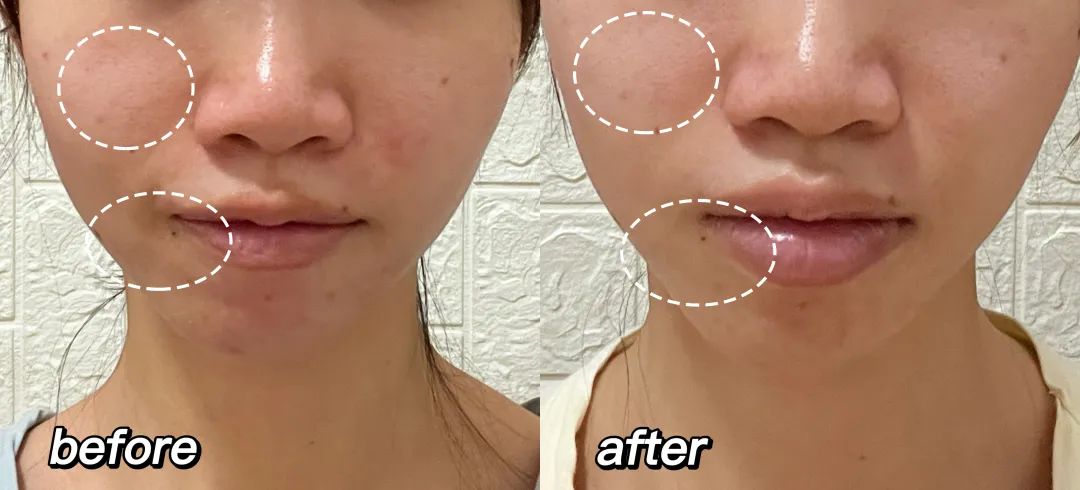 小佳是混油皮,大学时期脸颊长痘留下了不少陈年痘印,下巴处偶尔会有几个红痘印。每天护肤就用水+630精华,打卡2周左右,看!不仅脸亮了、下巴的痘印基本看不到了,连脸颊的陈年痘印也有淡化~