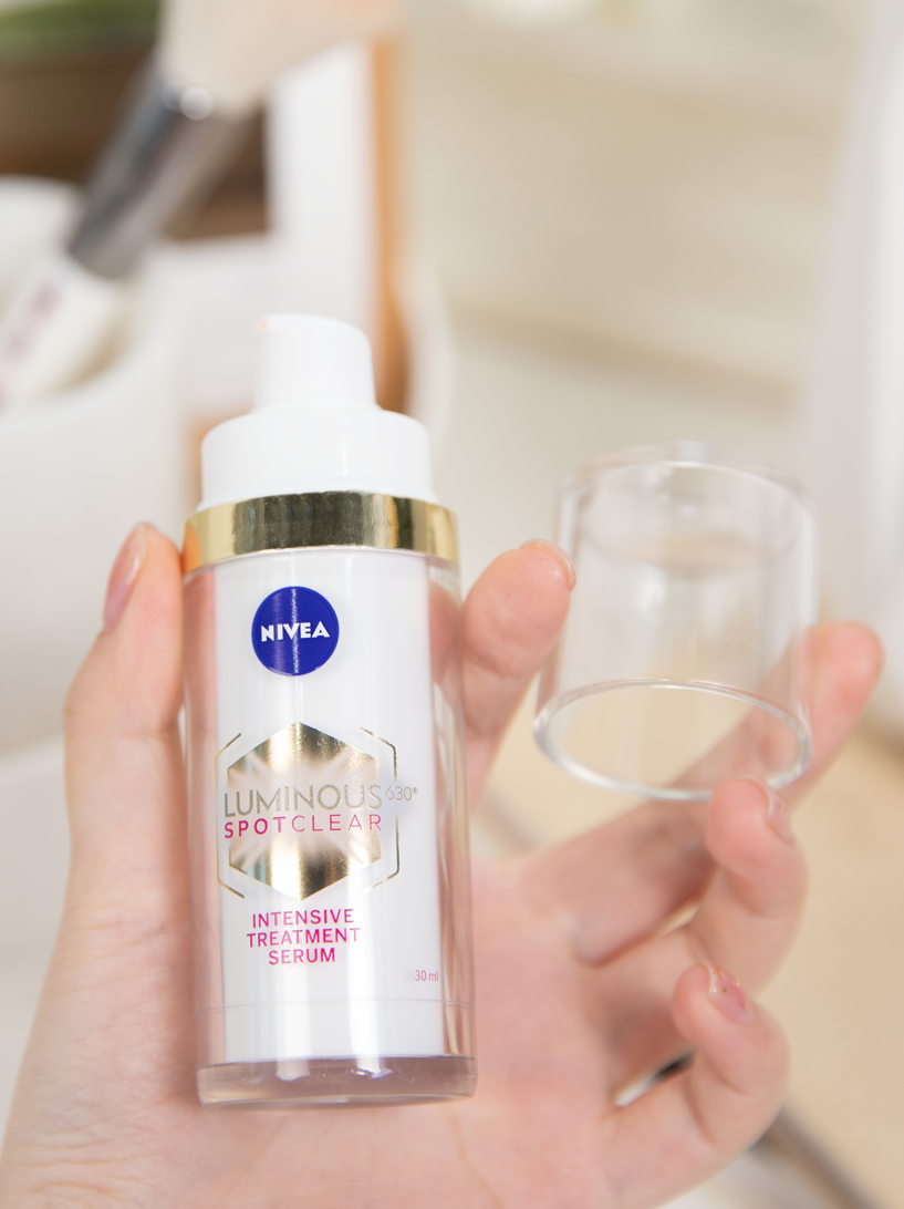 她脸颊偏干,平时洗了脸要立刻涂精华保湿,不然就会拔干。用630精华,即使只涂它一个,一整晚脸都是润润的。