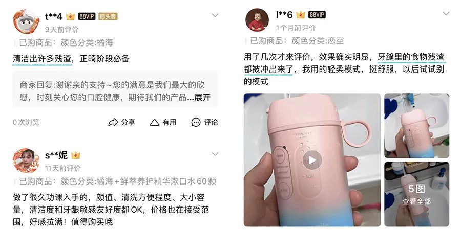 用过的人都说:“牙缝里的食物残渣都被冲出来了”“冲牙舒服”“正畸必备”,妥妥的塞牙神器。