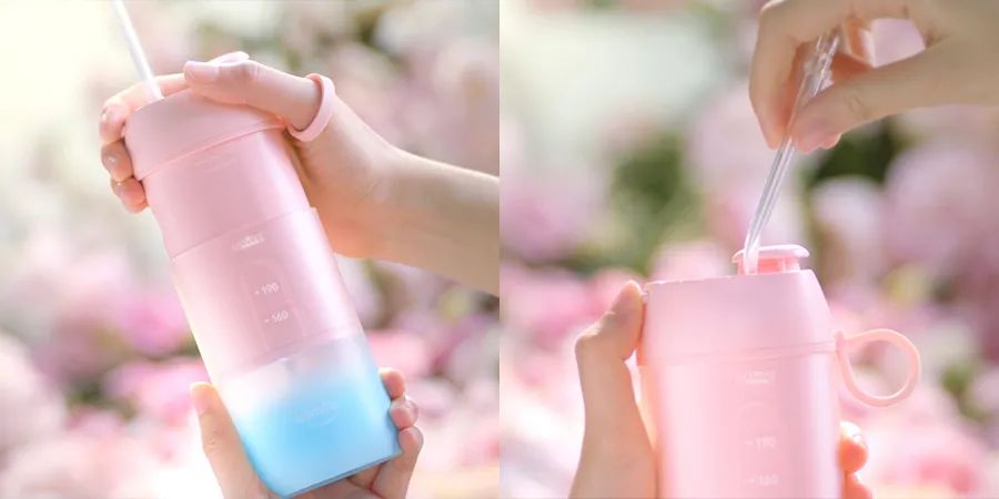 第三,看颜值+便携度。像密浪冲牙器这种漂亮的粉蓝渐变的恋空色(共5种颜色,也可以挑你喜欢的),用完喷嘴直接塞在注水口,宛如精致时尚单品💅每次用都心情大好。