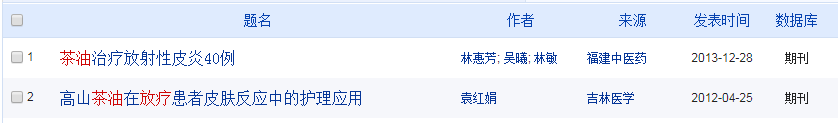 在中国知网上,搜索“放疗 茶油”只有两篇论文,结合其他文献库,我们选择了两篇分别关于山茶油治疗、预防放射性皮炎的研究,咱们一起来看看。
