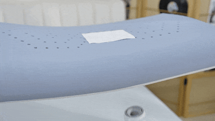高开孔率设计,让空气自由对流,就像形成了一个「微型换气系统」,睡在上面,仿佛能感受到冷空气从孔洞下方进入,热湿气从上方孔洞排出,不仅透气不闷,反而自带清爽感。