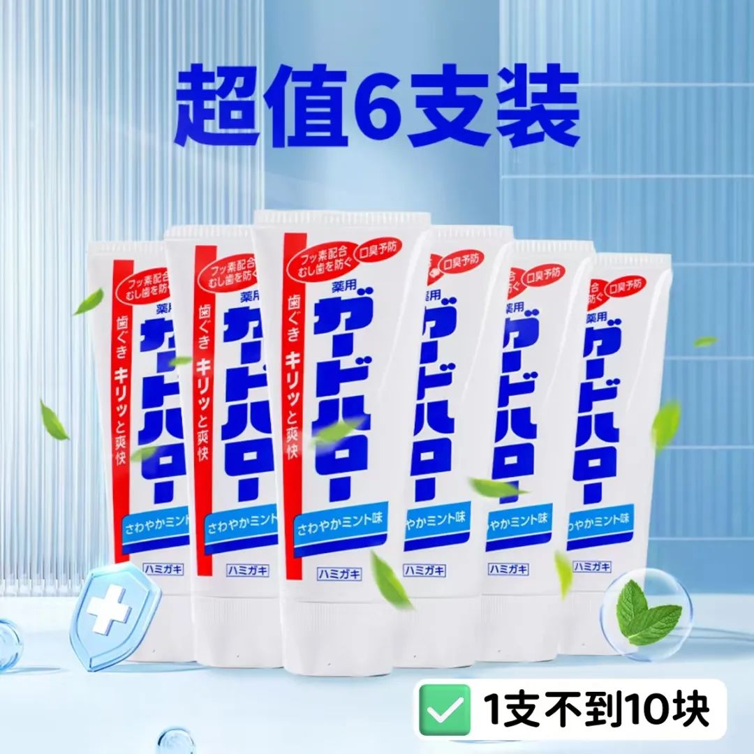 建议入个6支装,1支还不到10块!全家一起用,亮齿护龈,把牙齿养好了,又能省下上万元的看牙费了。