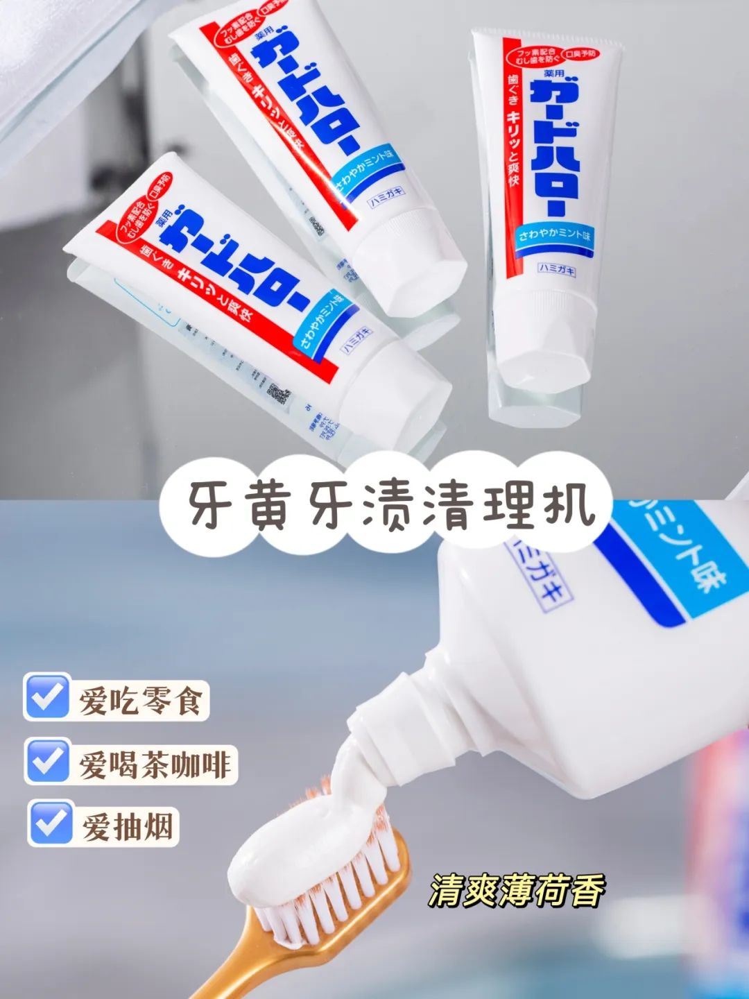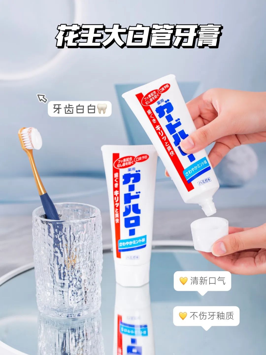 万年烟民党,口臭如影随形,坚持用花王大白管,清新薄荷味,牙齿亮白白。