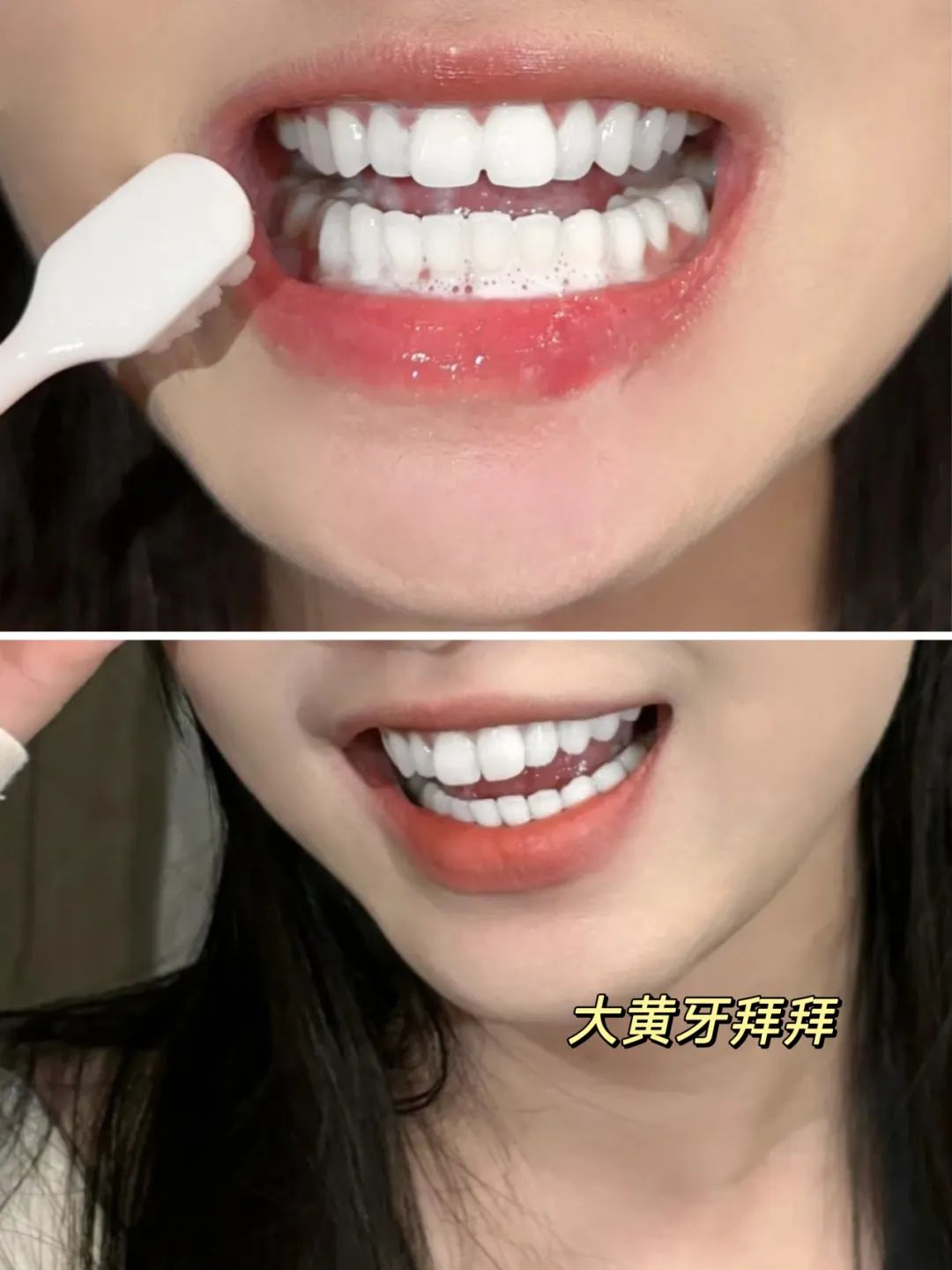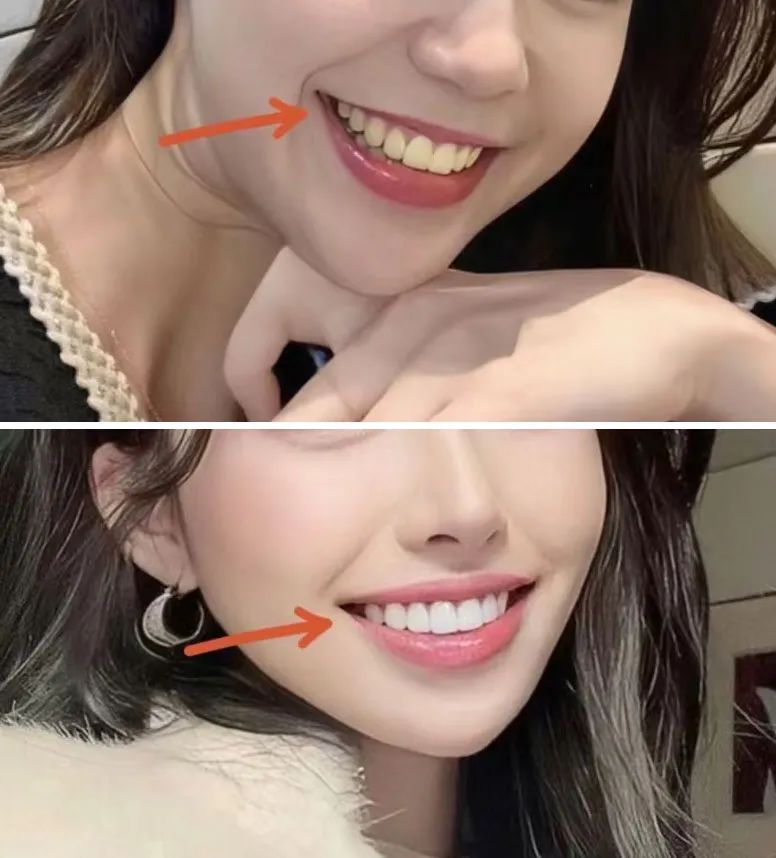 来看看对比,牙黄普普通通,牙白瞬间感觉像富家千金。